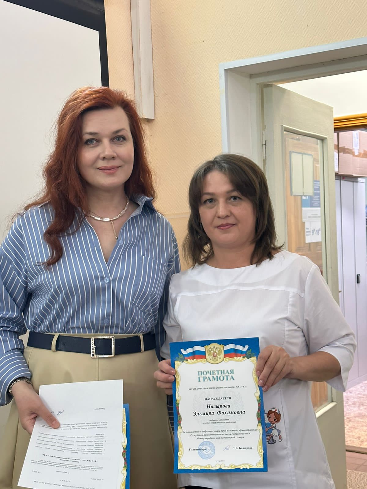 Сегодня 12 мая 2023 г. в Международный день медицинской сестры ГБУЗ РБ Стоматологическая поликлиника № 5 г. Уфа и Председатель Профкома поздравили медицинских сестер с их профессиональным праздником, вручив им почетные грамоты и подарочные сертификаты.