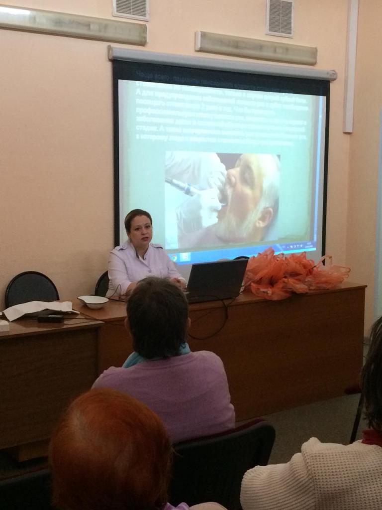 С лекцией по теме : «Об особенностях гигиены полости рта у пожилых» выступила зав.лечебным отделением №2 Фарвазова Л.А.